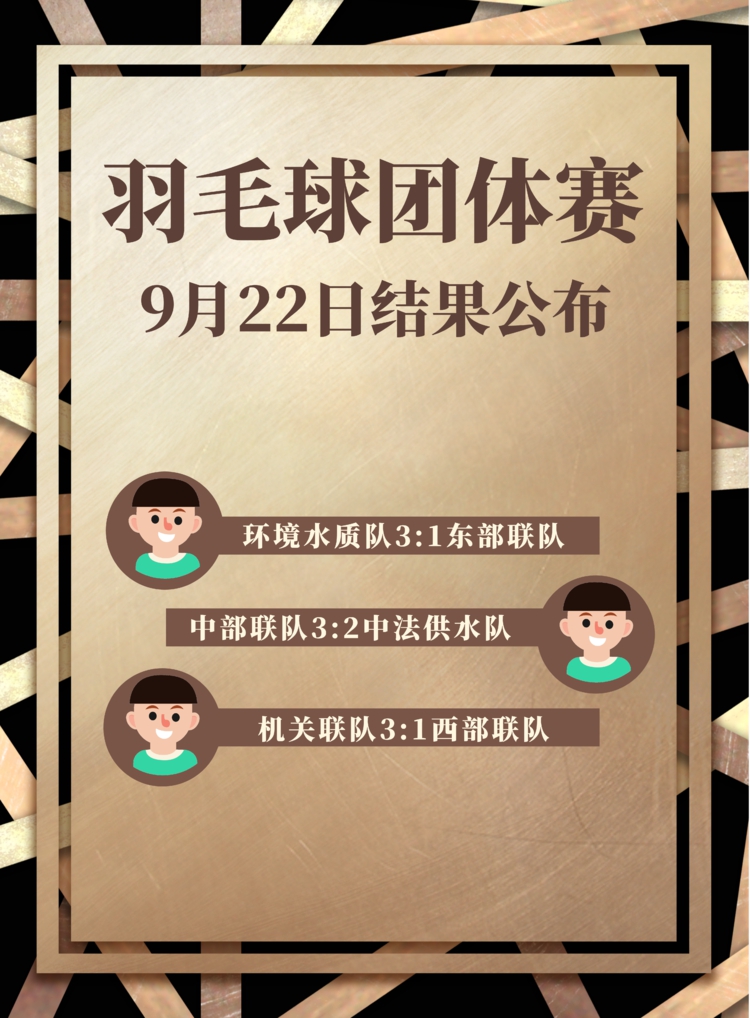 隨后,羽毛球團體賽正式開始,本輪參加比賽的隊伍有東部聯(lián)隊、環(huán)境水質(zhì)隊、中法供水隊、中部聯(lián)隊、機關(guān)聯(lián)隊及西部聯(lián)隊。