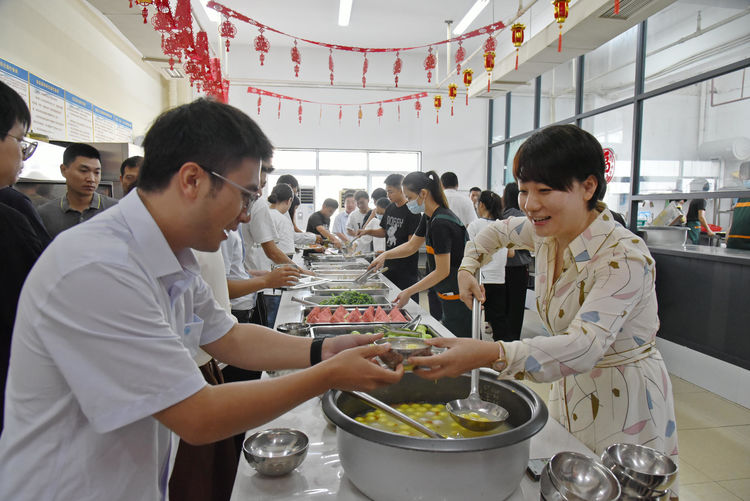 集團黨委副書記、總經(jīng)理孫濤濤為職工盛湯圓