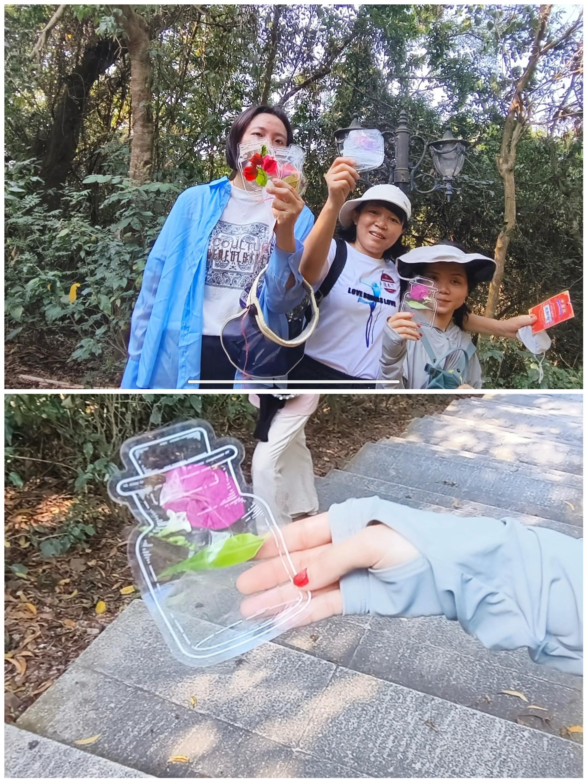 登山賞景的同時,各小組每人還要收集3種以上不同花草,制成壓花書簽。一路上,大家看到地上散落的花草紛紛主動撿起,為制作書簽準(zhǔn)備好材料。“壓花書簽,是一種非常流行的手工藝術(shù)體驗,制作過程簡單,又別有意趣。”收集到的花草經(jīng)過大家的構(gòu)思、設(shè)計和搭配,被制作成了一枚枚精美的書簽,大家紛紛表示,在三八婦女節(jié)收獲一份自己親手制作的禮物很有意義。