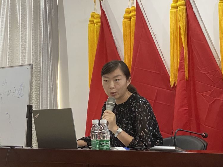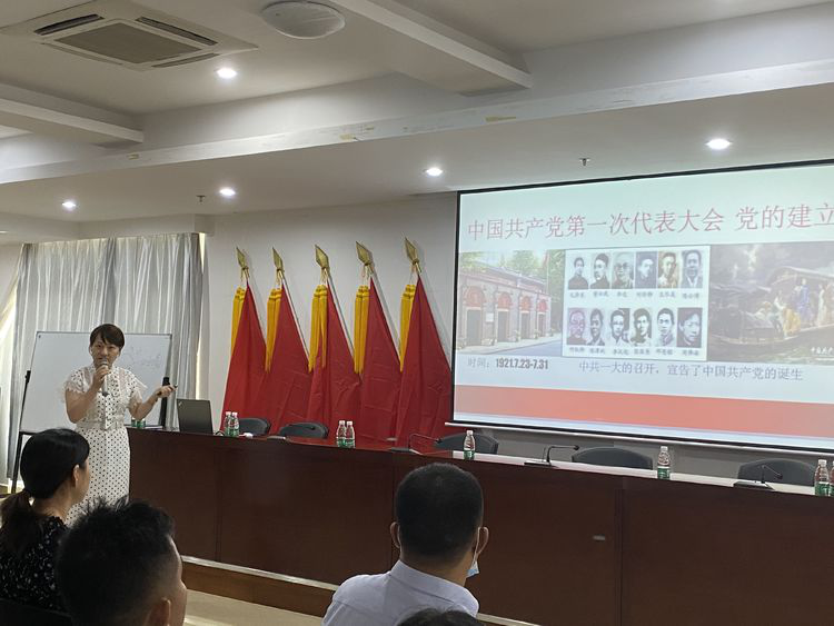 隨后,章梁為全體與會人員上了題為《初心不改 身先士卒——黨的浴血奮斗史》主題黨課。她從馬克思主義的形成與發(fā)展切入,為大家生動形象地講述了中國共產黨從1921年成立一直到1949年中華人民共和國成立所經歷的崢嶸歲月,勉勵各黨員及入黨積極分子要牢記“靡不有初、鮮克有終,懷揣夢想、砥礪前行,不忘初心、牢記使命”,繼續(xù)深入學習貫徹新時代中國特色社會主義思想,錘煉忠誠干凈擔當?shù)恼纹犯?,團結帶領全國各族人民為實現(xiàn)偉大夢想共同奮斗。最后,全體與會人員共同起立高唱《沒有共產黨就沒有新中國》,慷慨激昂的歌聲為黨課畫上圓滿句號。