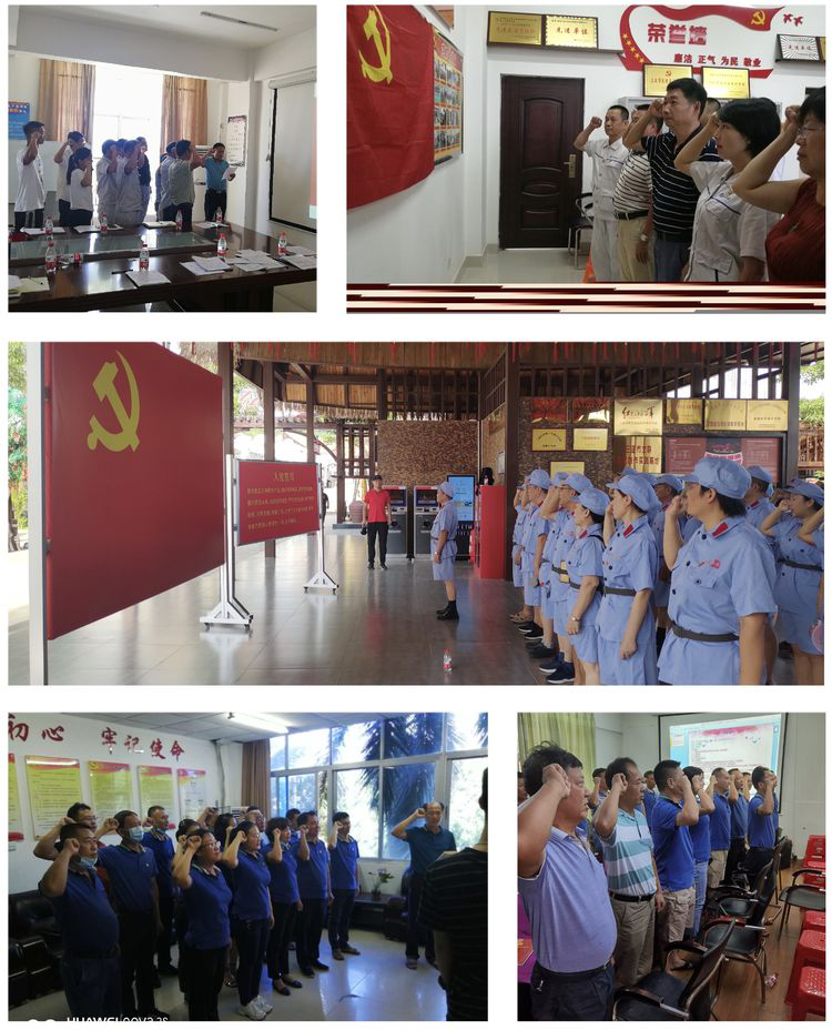 各黨支部積極組織新老黨員重溫入黨誓詞,面對鮮艷的黨旗莊嚴宣誓。集團公司黨總支第四黨支部和合作公司黨總支開展“重溫入黨誓詞”紅色主題黨日活動,組織黨員和入黨積極分子到三亞紅色娘子軍愛國主義教育基地,著紅軍裝沿檳榔河西側徒步紅軍原址原路往返5公里,以小型情景再現(xiàn)的模式重溫革命歷史,體驗紅軍戰(zhàn)斗生活。