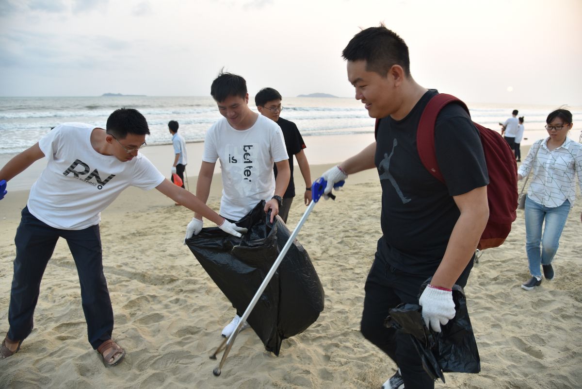 下午18點下班后,公司10余名團員在集團一樓集合,根據(jù)事先充分的安排下到達了目的地,全體團員以高昂的熱情投入到“學雷鋒志愿服務”的活動中,環(huán)繞三亞灣海灘對旅游垃圾、白色污染物等進行清理。為了徹底清理干凈,大家提前準備了垃圾撿拾器、垃圾袋、手套等各種工具,走一路撿一路,不怕臟不怕累,互相配合、相互協(xié)助。在勞動的同時,團員們還積極主動向海灘游玩市民宣傳保護海洋環(huán)境衛(wèi)生的知識,增強他們保護環(huán)境、愛護家園的意識。經(jīng)過大家的齊心協(xié)力,海灘環(huán)境得到明顯改善。