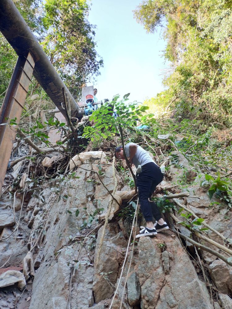 本次活動由公司黨委書記袁文革同志帶隊,各黨委委員分工協(xié)作,活動分為四個小組進行。活動地點地處北部山區(qū)地帶,環(huán)境較為艱苦,各黨員干部發(fā)揮敢于擔當,吃苦耐勞的精神,清理了北部水廠廠區(qū)的各個衛(wèi)生死角。受北部山區(qū)地形影響,供水管線大多處于高山險壑等地勢較為險峻的位置,黨員干部們不畏艱險,翻山越嶺,在為供水管道沿線播撒了綠色種子的同時,逐個檢查了沿線管道的加固情況,為供水管線排查隱患。