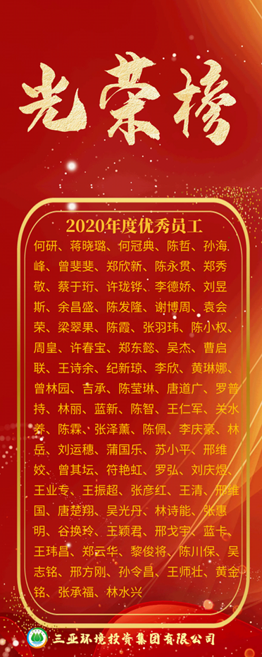 公司取得的優(yōu)異成績,離不開我們?nèi)w環(huán)投人的共同努力,是我們?nèi)旧舷氯翰呷毫?,勠力同心,奮楫篤行的成果。在我們環(huán)投人的隊(duì)伍中,涌現(xiàn)出了一大批管理科學(xué)、敢于創(chuàng)新的先進(jìn)集體和盡職盡責(zé)、勇于奉獻(xiàn)的先進(jìn)分子。為了鼓勵先進(jìn),樹立典型,激發(fā)全體職工干部的奮斗熱情,公司決定對2020年度涌現(xiàn)出的先進(jìn)集體和先進(jìn)個人予以嘉獎!