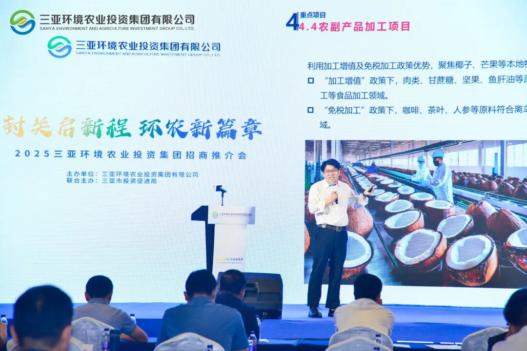 12月23日,由三亞環(huán)農(nóng)集團(tuán)、三亞市投資促進(jìn)局聯(lián)合主辦的“封關(guān)啟新程·環(huán)農(nóng)新篇章”2025招商推介會在三亞灣紅樹林國際會展中心舉行。推介會圍繞環(huán)農(nóng)集團(tuán)六大業(yè)務(wù)板塊,集中推介了11個招商項目,投資總規(guī)模達(dá)28.44億元。來自各相關(guān)部門和60多家島內(nèi)外企業(yè)、合作伙伴、金融機(jī)構(gòu)的代表同三亞環(huán)農(nóng)集團(tuán)共話農(nóng)商與環(huán)境板塊新成果、共探自貿(mào)港新政策、共尋合作新機(jī)遇。